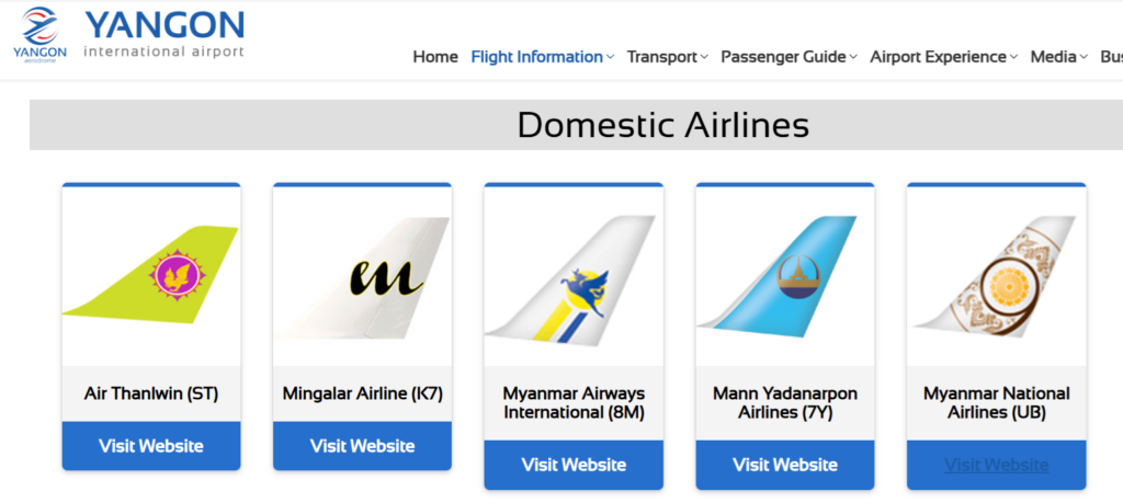 ▲ミャンマーへの国際線到着から国内線への同日乗り継ぎは弊社ではおすすめしません。